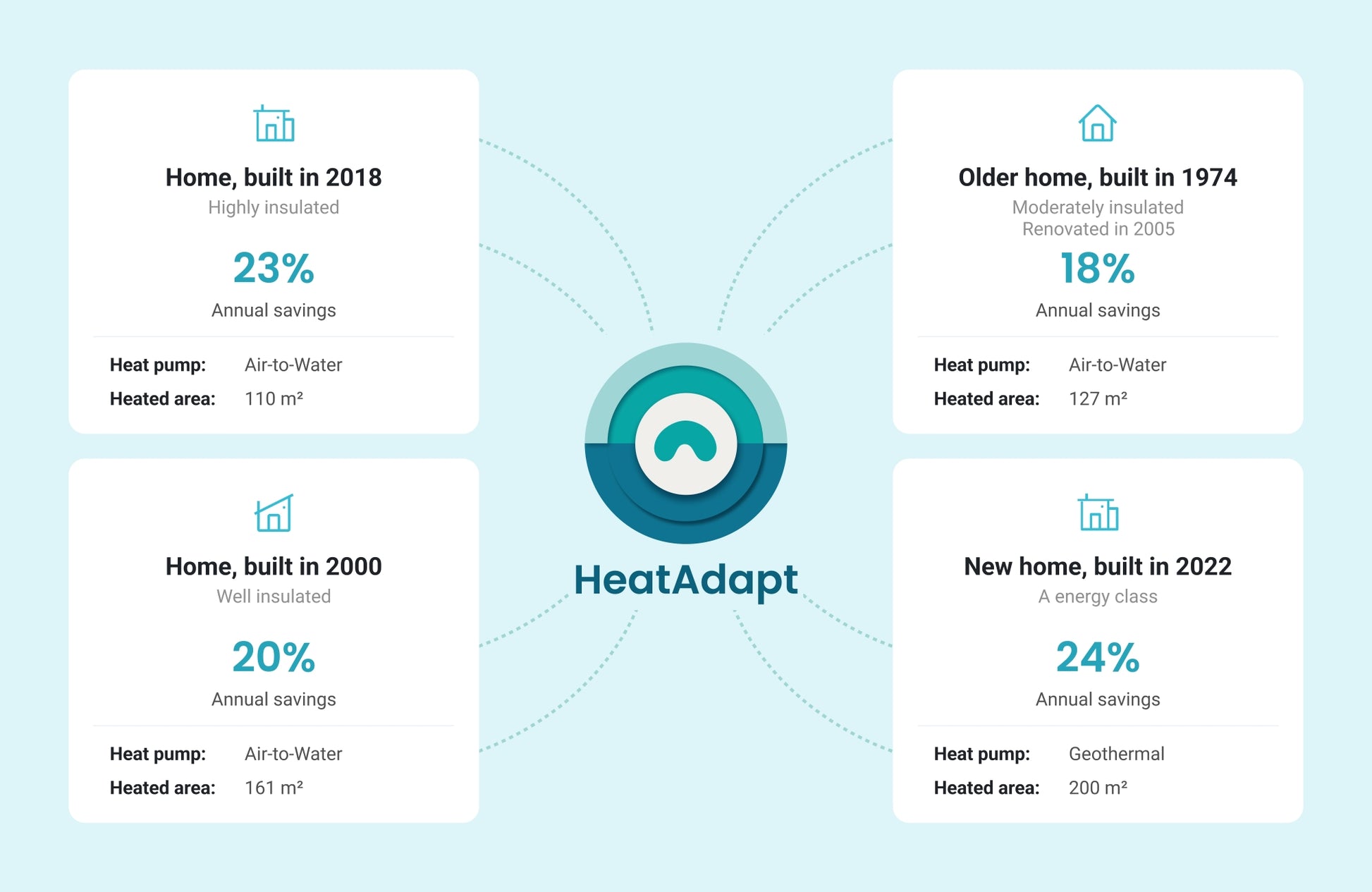HeatAdapt automātiski plāno gaisa–ūdens un zemes siltumsūkņu darbību, lai tie patērētu elektroenerģiju lētākajās stundās, balstoties uz Nord Pool cenām.